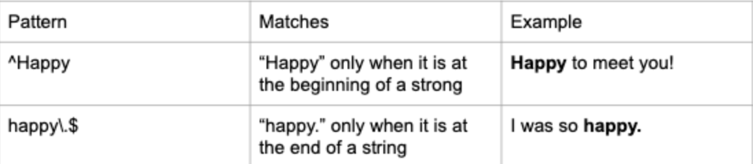 ^Happy : Happy를 찾는데 문장 맨 앞에 나오는 Happy를 찾아줘 라는 의미