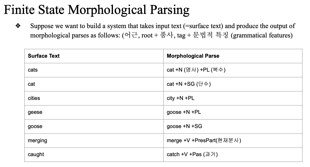 이때 의문 가질 수 있는 부분이 fox + N 이 되게 되는데 이 경우 e가 사라지게 된다. 여기에 대해서 교수님 께서는 Rule base의 방법으로 Rule을 통해서 해결해야 한다고 말씀해주셨다.