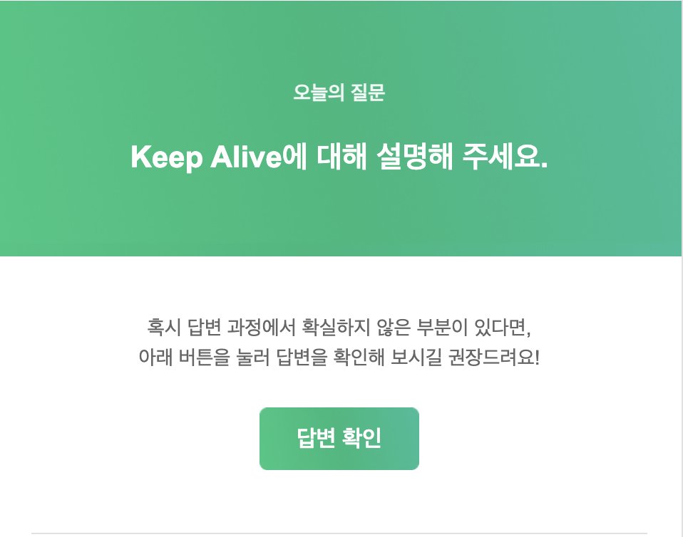 Keep Alive란, 네트워크 또는 시스템에서 커넥션을 지속해서 유지하기 위해 사용되는 기술이나 설정을 의미한다고 한다.