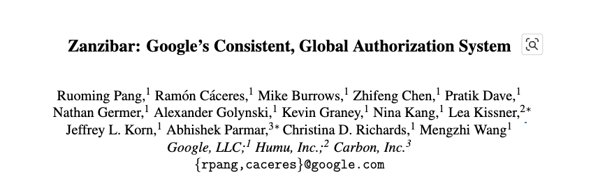 본 논문에선 권한 부여 확인을 수행하는 시스템인 Zanzibar를 제시